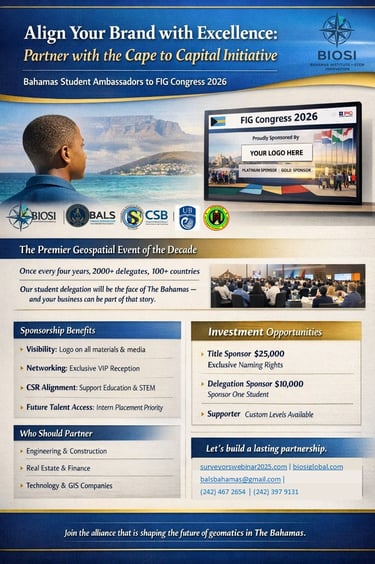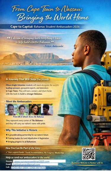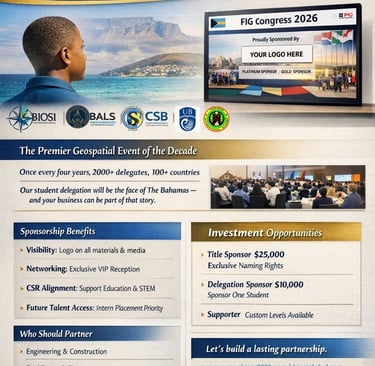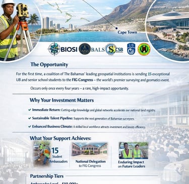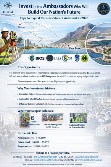 BIOSI was founded to drive innovation and capacity in the geospatial sector. The Cape to Capital initiative embodies our mission: by sending 15 students to the FIG Congress, we are making a direct investment in the next generation of Bahamian surveyors, GIS specialists, and land administrators. This effort supports the Government’s land reform agenda and will yield tangible benefits for every Bahamian.